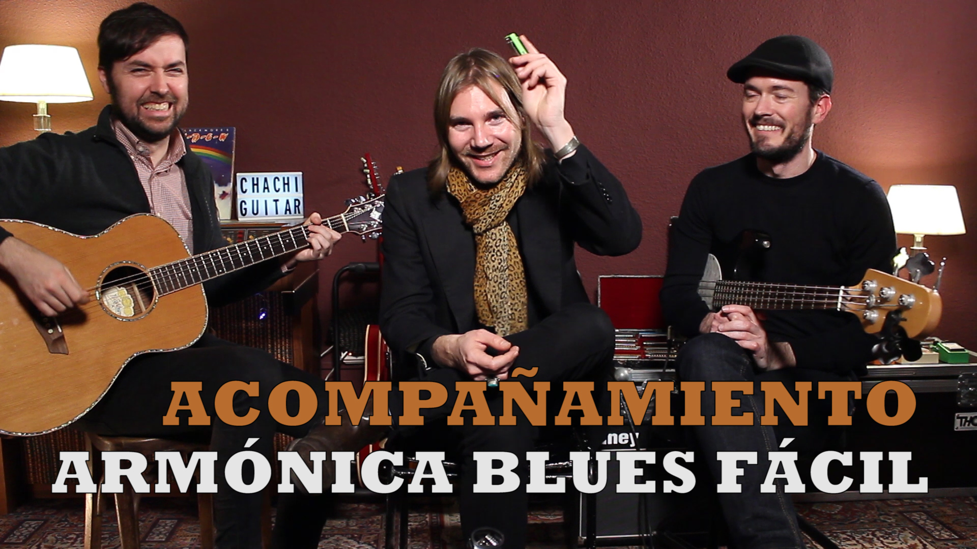 https://www.youtube.com/watch?v=UjUDD4VQWsU Hoy nos hemos mudado a los estudios de Chachi Guitar para hacer dos toturiales con ellos… ¿dos tutoriales? Si, uno lo puedes ver aquí y el otro está en su canal.En este vídeo te enseñamos un acompañamiento básico para un blues en la tonalidad de G tocado con tu armónica de G y acompañado por Ignacio y Javier. En este vídeo te enseñamos la importancia del ritmo basándonos en la figura de la corchea swing. En el vídeo de Chachi Guitar te enseñamos algo muy parecido pero con un ritmo Rock&Roll. Aquí tienes la partitura para poder seguir la clase:partitura acompañamiento armónica blues fácil chachi guitarY aquí tienes el enlace al vídeo de Chachi Guitar:https://www.youtube.com/watch?v=lBTk3JCZpdU